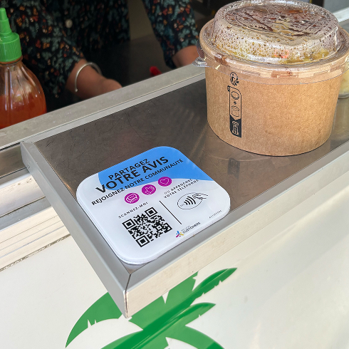 Idéal dans la restauration, les cafés, ou encore les boulangeries. En posant la plaque sur une table, un bar ou un comptoir, vos clients l’ont littéralement sous la main. Ils n’ont qu’à sortir leur téléphone, scanner, et l’avis est déposé en quelques secondes, souvent en groupe ou entre amis.